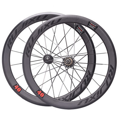 Brand:RUJIXU Model:PRO S40 Size:406/451, outer width 19.5mm, inner width 13.5mm Open gear:front 74/100mm, rear 130mm Holes:V brake, front 16 holes, rear 21 holes Hub:Carbon fiber hub, front two rear five bearings Color:Black/Red/Gold/Titanium/Purple Weight:front 660g, rear 840g List:high pressure tire pad + gasket + quick release + 2 spare spokes