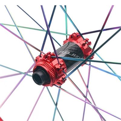 Model:DTXT-2.0 Size:38mm Specifications:Support barrel shaft version and quick release version Hub:Six-hole and thru-axle versions, straight-pull front two rear four bearing hub Freehub:Strengthening aluminum freehub to be compatible with shimano 8-11 speed; Can be upgraded to 12-speed micro-spline XD freehub,12-speed micro-spline Sulink XD freehub Open file:Quick release version front wheel 9*100mm rear wheel 9*135mm Thru-axle version front wheel 15*100mm rear wheel 12*142mm Rim:French mouth (6.5mm) eccentric ring, weight-reducing aluminum alloy rim Number of holes:24 holes in the front and 24 holes in the rear Size:21mm frame height, outer rim width 27mm, inner width 23.5mm Tire:Support 1.5-2.5 Spokes:Taiwan Xinda straight flat spokes Weight:26 inch 1590g/27.5 inch 1610g/29 inch 1680g (weight does not include tire pads and quick release) Color:black and red hub Packaging size:74cm * 17cm * 65cm List:One pair of quick release + high pressure tire pad + one gasket