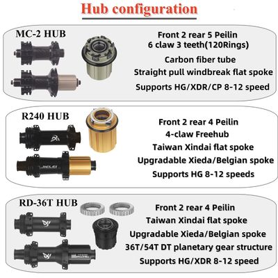 RUJIXU Factory 700c 32mm Carbon Clincher Disc Brake Wheelset 24 Holes MC-2/R 240/RD-36T Tubeless Road Bike Wheels